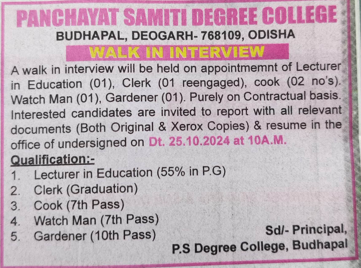 Sub-Collector, Deogarh -cum-President Panchayat Samiti Degree College, Budhapal.